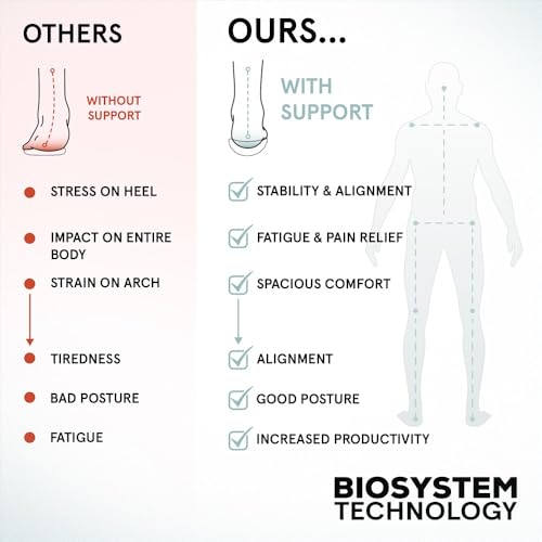 • Superior Arch & Heel Support - Exceptional arch support helps reduce pressure on joints by properly distributing weight and balance. Our cushioned deep heel cup helps absorb shock, preserve your natural heel pad, and properly align the body.