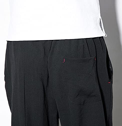 chouyatou Men's Casual Stretched Waist Relaxed Fit Lightweight Tapered Legs Linen Jogger Capri Pant 6