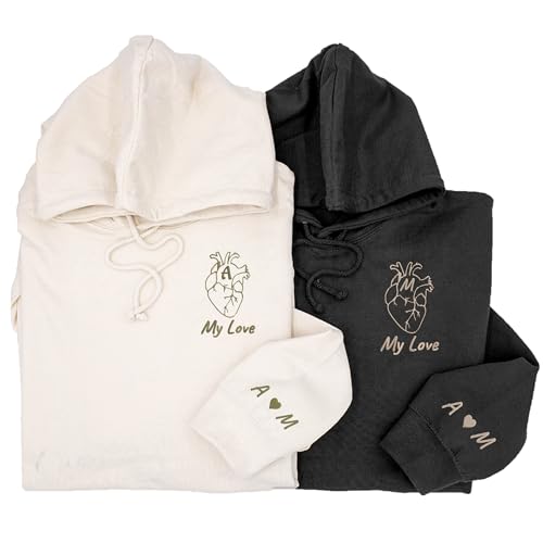 More information about Personalized Embroidered Anatomical Heart Sweatshirt With Initials On Sleeve, Couple Hoodie, Custom Quote, Gifts For Boyfriend, Custom Quote, Matching Heart Initials Sweatshirt, Couple Hoodie