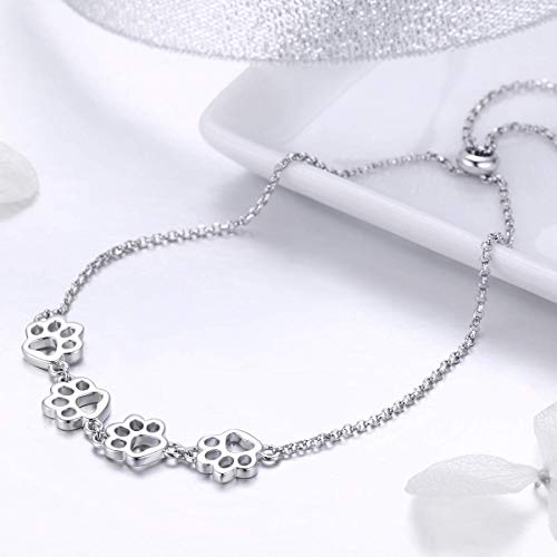 BISAER 925 Sterling Silver Dog Cat Paw Prints Bracelets Cat Bracelet Adjustable Bracelets for Women Dog Mom Pet Lover Gifts Jewelry… 5