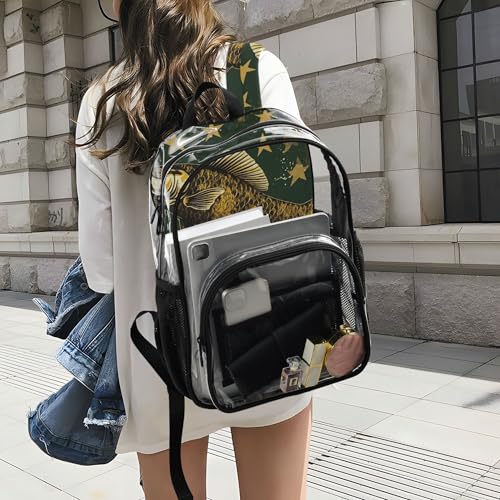 Big Fish Stars Camo Clear Backpack PVC Transparent Backpack Lightweight Book Bag Capacity Clear Bag for Kids Boys Girls