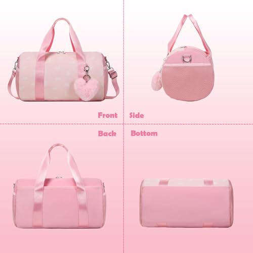 sought-after ! Pink Bow Ballet Bag for Girls with Plush Pendant, Shiny Girls Dance Bag Glitter Sports Duffle Bag with Shoulder Strap and Waterproof Wet Pocket for Girls