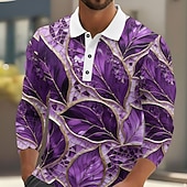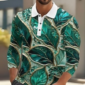 More information about Men's Leaf Abstract Polo Long Sleeve Polo Shirts Lapel Casual Outdoor Street Athleisure Daily Wear 3D Print Buttons Spring Fall Winter Blue Purple Green