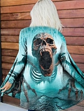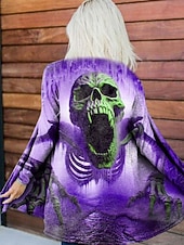 More information about Women's Coat Lightweight Comfortable Print Open Front Vintage Artistic Casual Halloween Skull Casual Short Collarless Regular Fit Long Sleeve Outerwear Blue Purple Orange Spring Fall