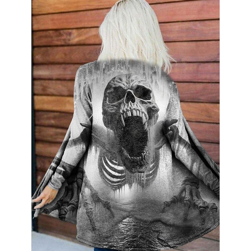 Women's Coat Lightweight Comfortable Print Open Front Vintage Artistic Casual Halloween Skull Casual Short Collarless Regular Fit Long Sleeve Outerwear Blue Purple Orange Spring Fall 10