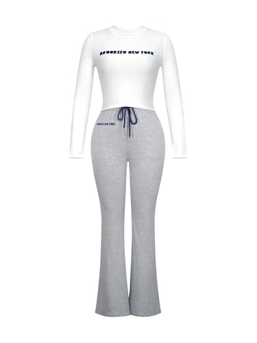 HOT ! COZYEASE Women's Letter Graphic Bell Pants Flare Bottom Drawstring Waist Skinny Long Trousers