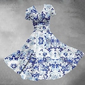 More information about Women's Mini Dress Casual Dress Summer Dress Fashion Modern Daily Beach Weekend Regular Fit Flower Short Sleeve V Neck Blue Spring Fall