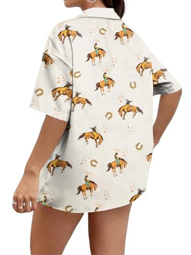 Western Button Up Shirts Women Retro Cowgirl Shirt Rodeo Tops Hawaiian Summer Vacation Short Sleeve Top Blouses 6