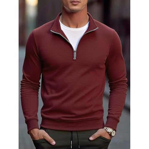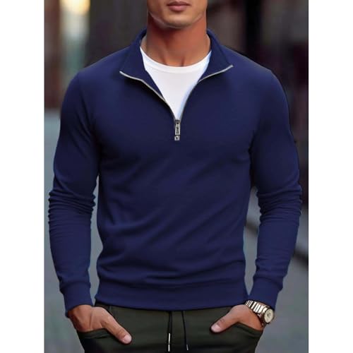 Men's Quarter Zip Knit Sweater Winter Casual Long Sleeve Soft Pullover Stand Collar Warm Jumper Top 6