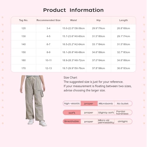 FEESHOW Kids Boys Girls Elastic Waist Cargo Pants for Trekking Camping Jogging Travel Leisure Pants with Four Pockets 7