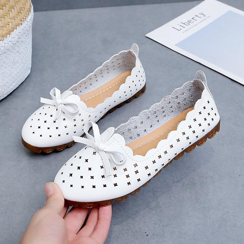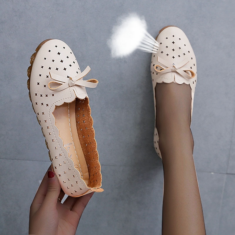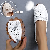 HOT ! Women's White Foldable Loafers - Breathable Perforated Flats with Bow Detail, Soft Sole, Casual Comfort Shoes for Work, Travel, and Daily Wear
