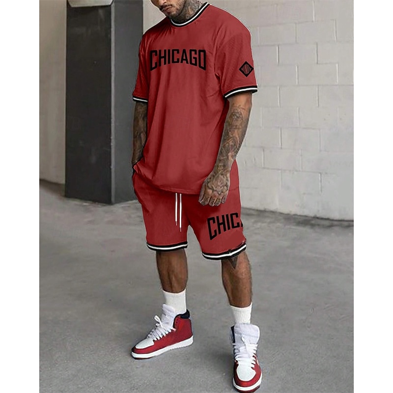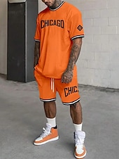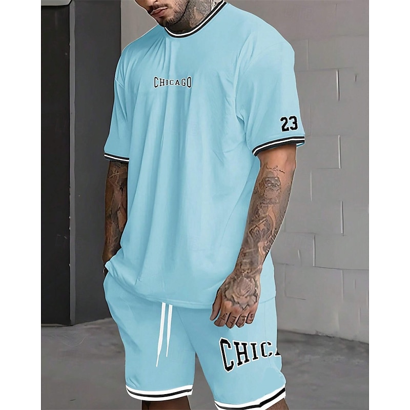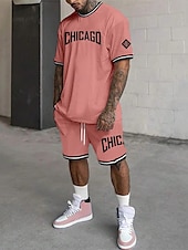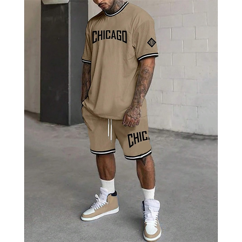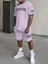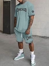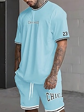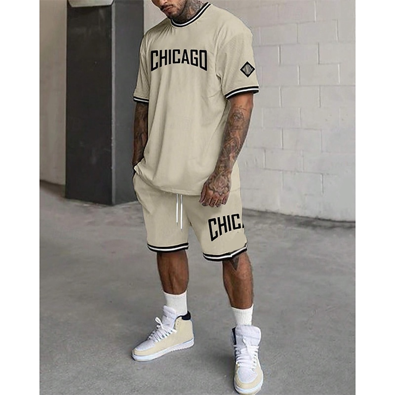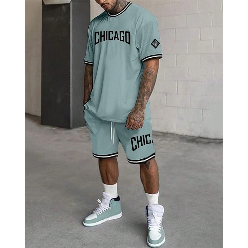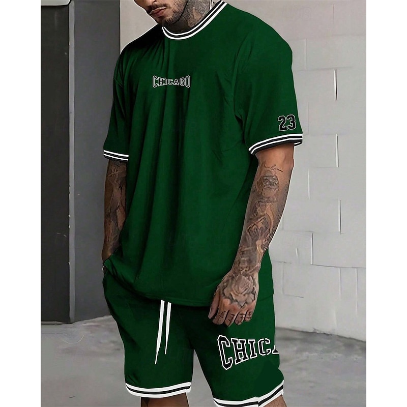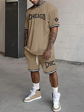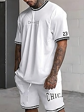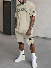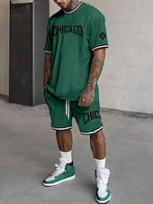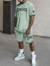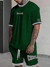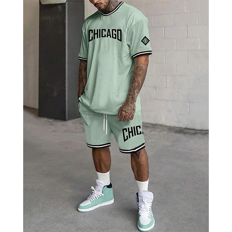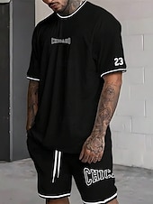 More information about Men's Tracksuit Outfit Set Shorts Crew Neck Outdoor Daily Sports Pocket Drawstring 2 Piece Graphic Letter Black White Light Green Polyester Activewear Streetwear Casual Summer