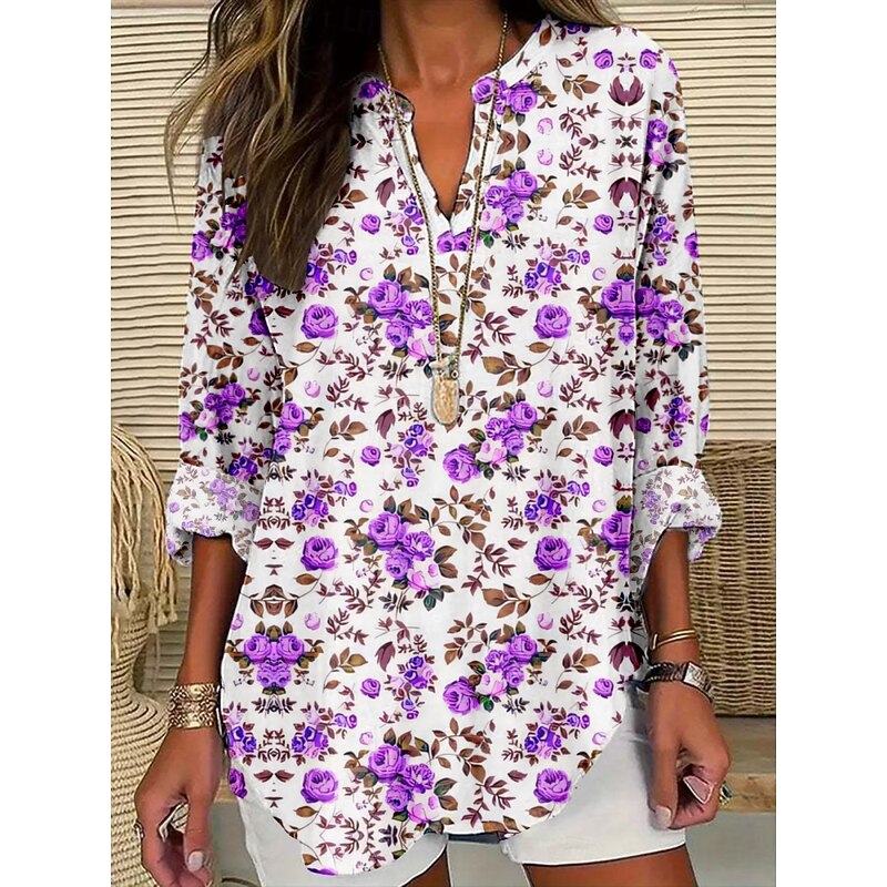 HOT ! Women's Blouse Floral Stylish Modern Long Sleeve V Neck Regular Tops Daily Holiday Print White Blue Lavender Purple Green Summer