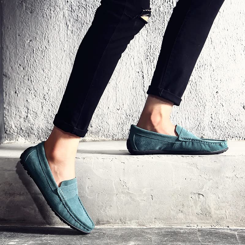 HOT ! Men's Loafers Shoes Genuine Leather Round Toe Stitching Details Suede Vamp Rubber Sole Penny Loafer Slip Resistant Lightweight Flexible Wedding(Green,10 M US)
