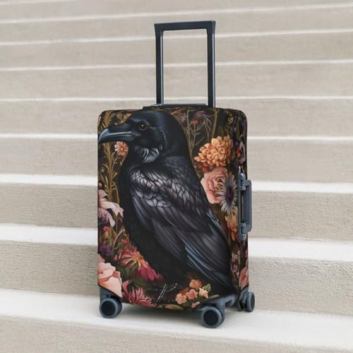 Travel Luggage Covers,Small Elegant Raven Surrounded By Flowers Thicker Elastic Suitcase Cover Dustproof Baggage Cover Scratch-Resistant Suitcase Cover Protector Fit 22-24 Inch Luggage Medium