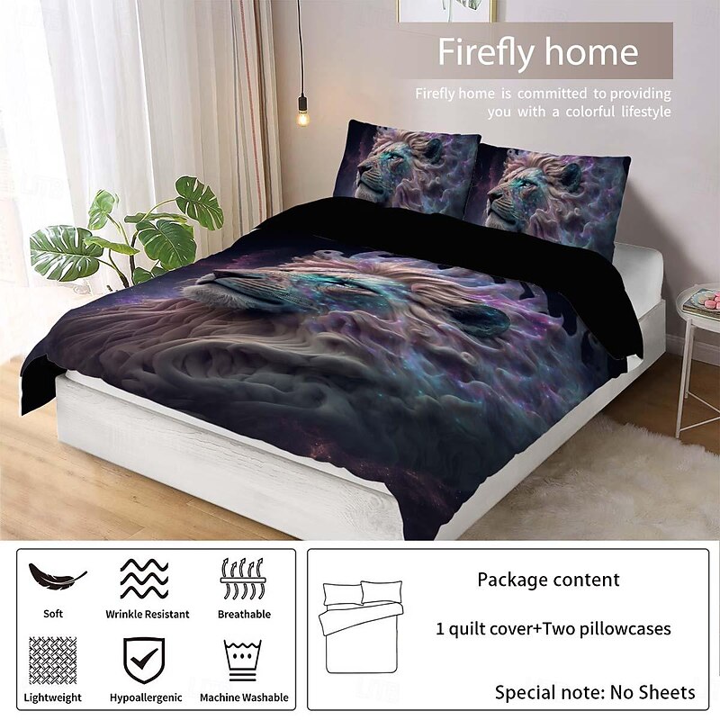 $47.99 - Colorful Neon Lion Head 3-Piece Down Duvet Cover Set for Hotel Bedroom Guest Rooms Bdding Comfort Set 2025. Shop for cheap Duvet Cover Sets online? Buy at lightinthebox.com on sale today!