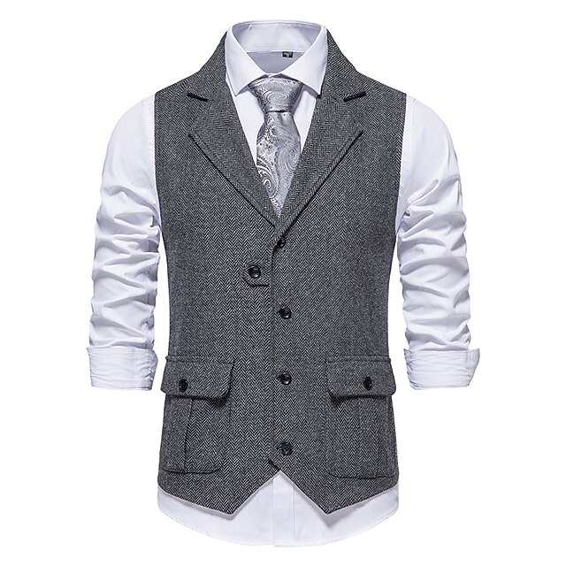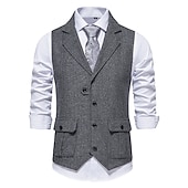 More information about Men's Vest Waistcoat Wedding Party / Evening Vintage Retro Spring Fall Pocket Polyester Warm Solid Color Single Breasted Regular Fit Navy Blue Dark Green Coffee Gray Vest