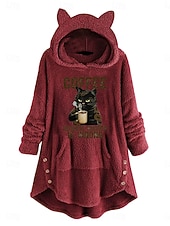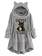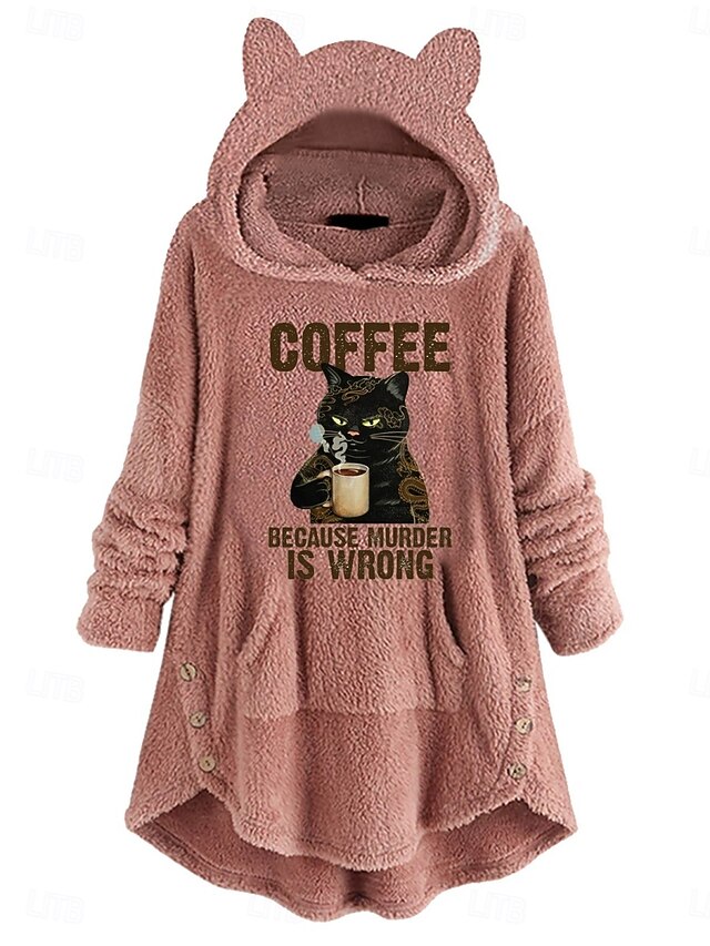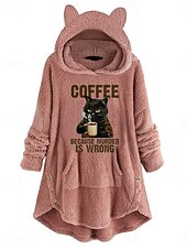 More information about Women's Pullover Hoodie Sweatshirt Cat Letter Casual Long Sleeve Hooded Long Tops Street Dailywear Casual Pocket Print Pink Wine Gray Fall Winter