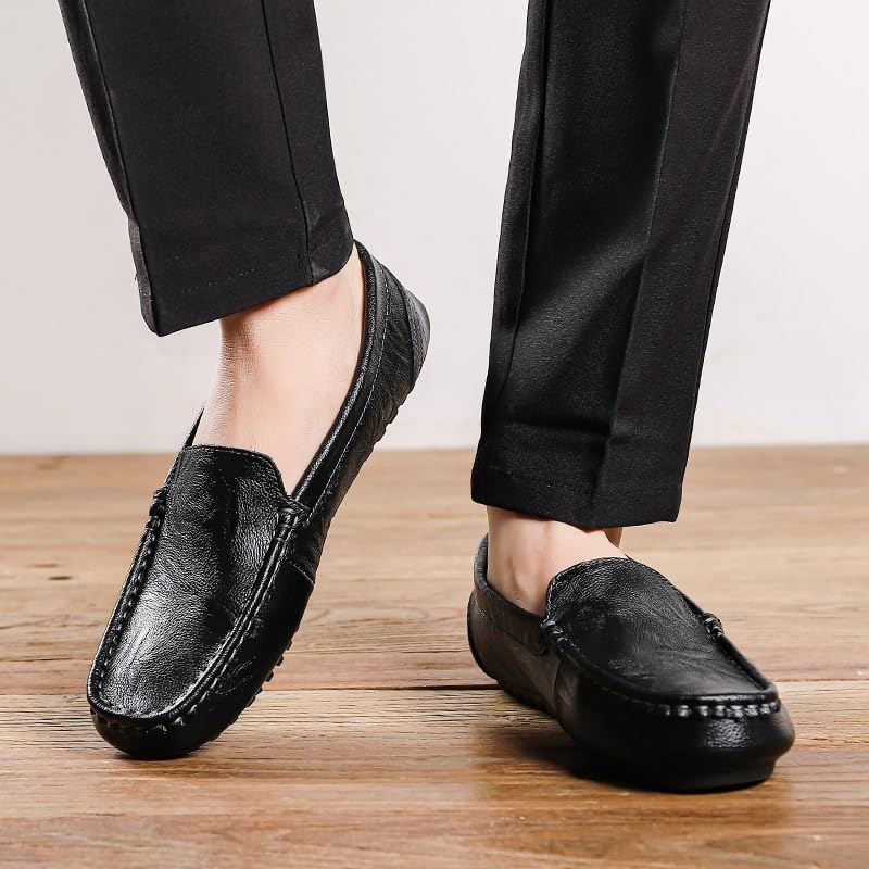 Men's Loafers Square Toe Faux Leather Moccasins Loafer Shoes Lightweight Flat Heel Flexible Wedding Slip-ons 6