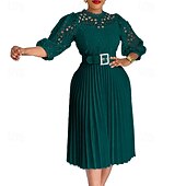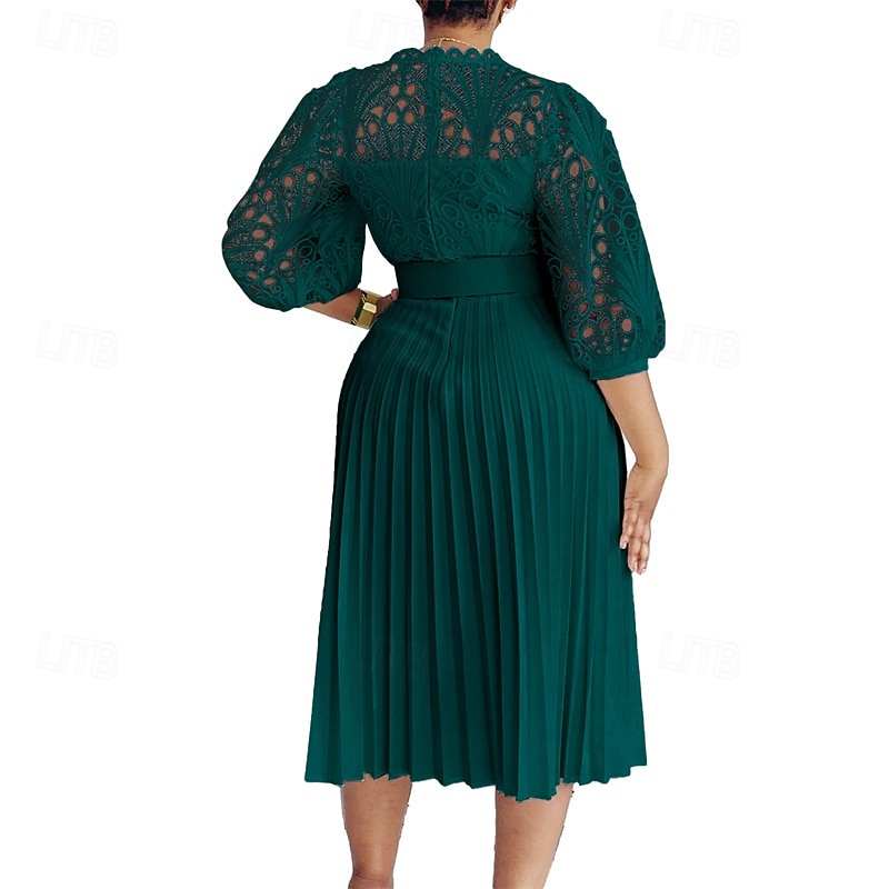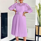 More information about Women's Midi Dress Lace Dress Casual Dress Fashion Outdoor Party Holiday Regular Fit Plain 3/4 Length Sleeve Crew Neck Purple Green Khaki Summer