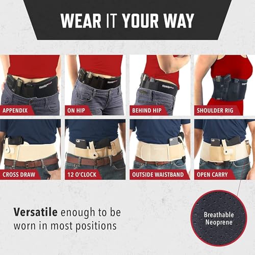 Belly Band Holster for Men and Women - Gun Holster by ComfortTac, Fits Smith and Wesson, Shield, Glock 19, 17, 42, 43, P238, Ruger LCP, and Similar Guns for Most Pistols and Revolvers 6