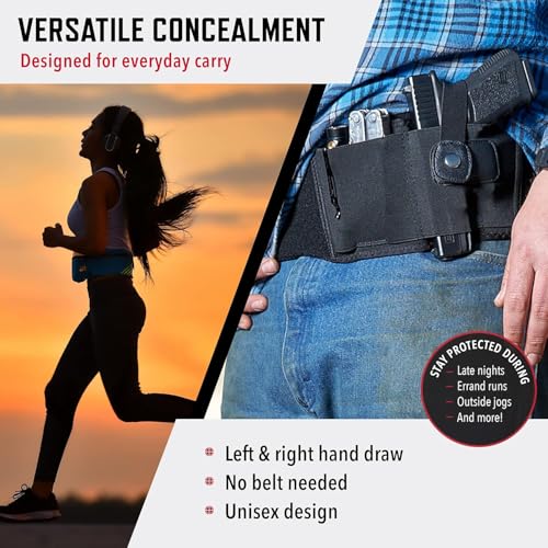 Size: Belly Up To 44Brand: ComfortTacHand Orientation: RightMaterial: NeopreneStyle: Right Hand DrawColor: BlackClosure Type: SnapManufacturer: ComfortTacUPC: 646437859813Our belly band holster is available in right- and left-hand draw; designed for firearms of various sizes, including subcompact, compact, and full-size pistols and revolversFrom wearing it at the appendix or hip, to sporting it outside the pants cross draw or open carry style, you can wear this pistol holster your wayOur gun holster for women & men is compatible with Glock 19, 23, 38, 25, 32, 26, 27, 29, 30, 39, 28, 33, 42, 43, 36, Smith and Wesson, Bodyguard, M&P Shield, Sig Sauer, Ruger, Kahr, Beretta, Springfield, Taurus PT111, Kimber, Rock Island, Bersa, Kel Tec, Walther, and moreThe Large, adjustable neoprene waistband on our bellyband holster for men and women fits up to a 44 belly while the XL fits up to a 54 bellyThese belly band holsters come with a hard plastic trigger guard and metal snap retention strap as a helpful safety feature to keep your gear secure superb for everyday use. premium materials and excellent craftsmanship ensure long-lasting durability.