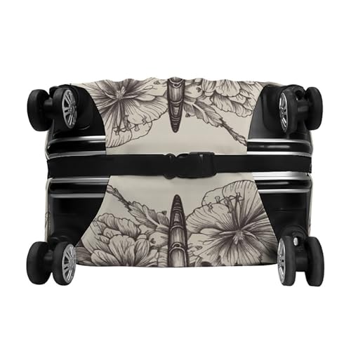 HOT ! Hand Drawn Floral Dragonfly Elastic Luggage Cover Suitcase Protector for 19-32 Inch Suitcases | Universal Stretchable Travel Bag Cover | Anti-Scratch, Washable with Zipper Closure XL