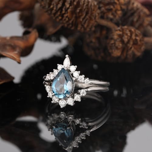 • Design Feature: This Art Deco women's wedding ring set features a stunning 1.5-carat pear-cut natural London Blue Topaz, set in 925 sterling silver for a distinctive and elegant look