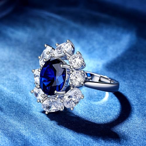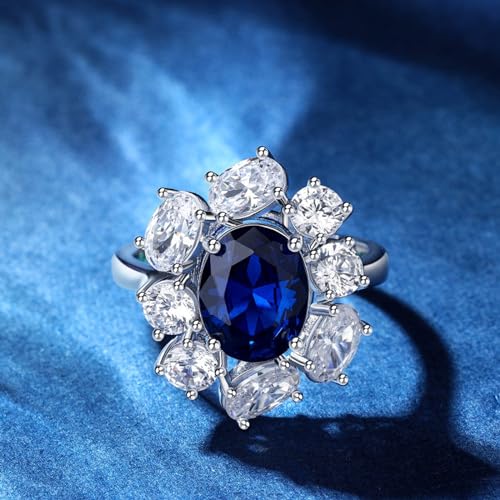 Jeulia Blue Sapphire Engagement Ring for Women: 925 Sterling Silver Bridal Set Princess Diana Kate Oval Cut Promise Wedding Band for Her Romantic Christmas Anniversary Jewelry with Gift Box