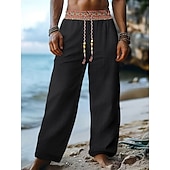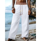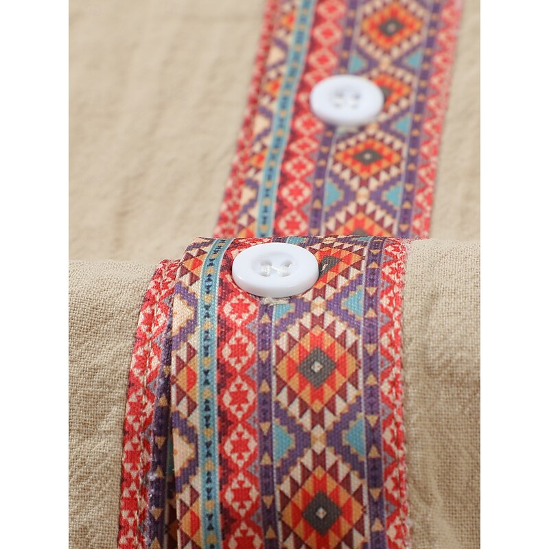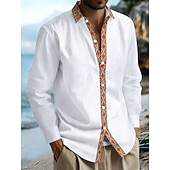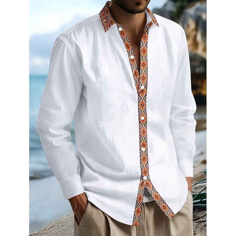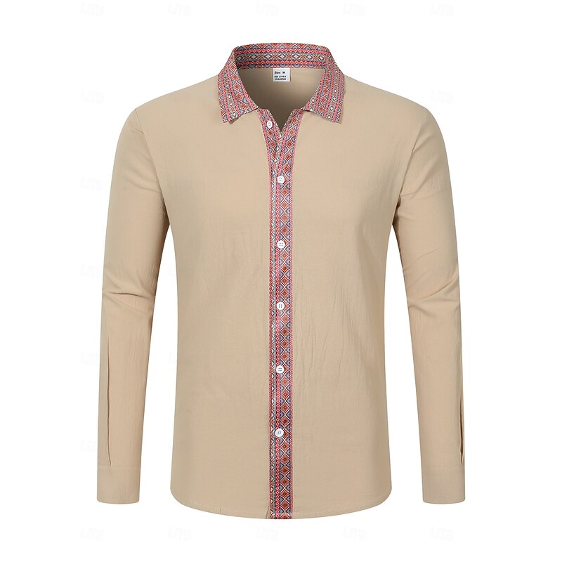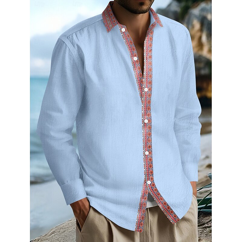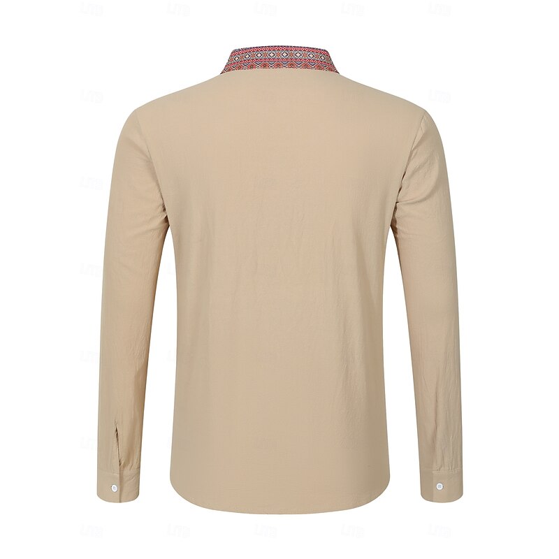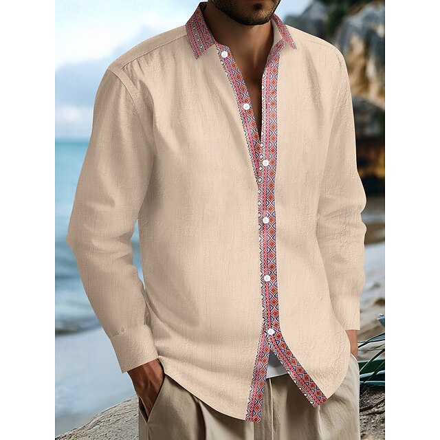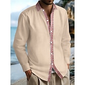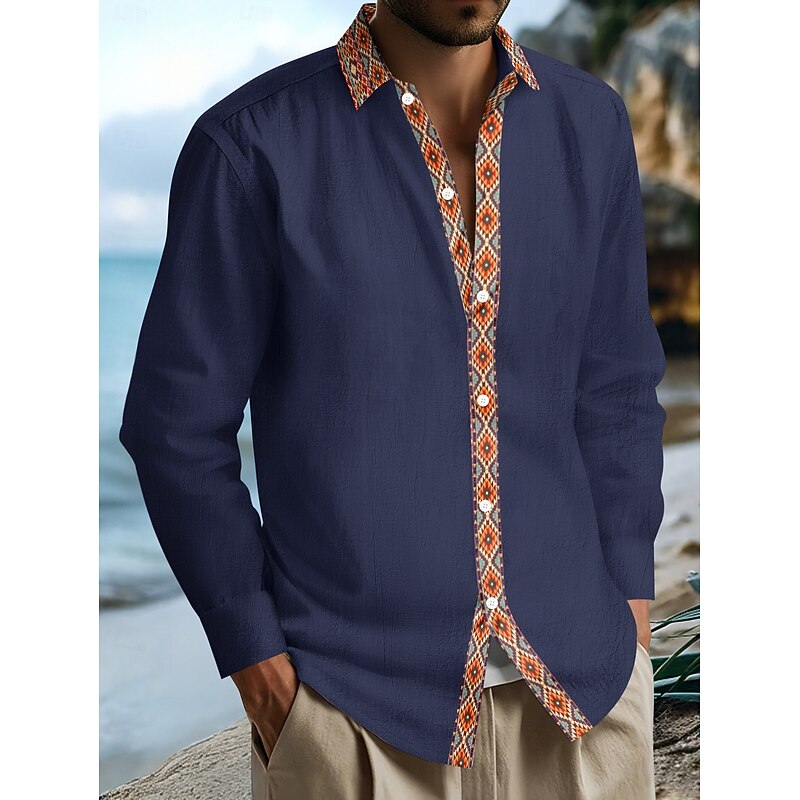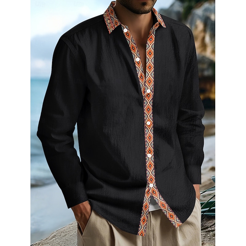 More information about Men's Shirt Linen Shirt Summer Shirt Beach Wear Button Up Shirt Ethnic Shirt Solid Color Vacation Holiday Black White Navy Blue Blue Long Sleeve Lapel Summer Spring Clothing Apparel Patchwork