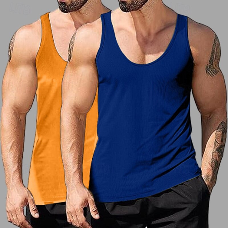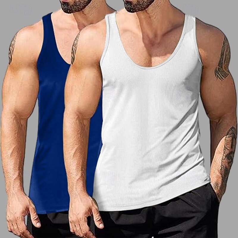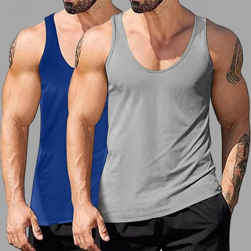 Why Choose 2PCs Men's Tank Top Undershirt Sleeveless Shirt Wife beater Shirt Sleeveless Deep U Scoop Neck Scoop Neck Summer Solid Color Plain Pit Strip Fashion Designer Sporty Ribbed Plain Casual Tank top?