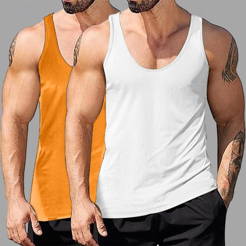 This 2PCs Men's Tank Top Undershirt Sleeveless Shirt Wife beater Shirt Sleeveless Deep U Scoop Neck Scoop Neck Summer Solid Color Plain Pit Strip Fashion Designer Sporty Ribbed Plain Casual Tank top combines elegant design with practical functionality. Every detail has been carefully considered to ensure you get the supreme possible experience. The supreme construction means this product will serve you well for years to come.