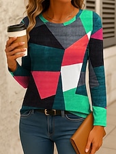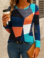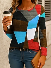 More information about Women's T Shirt Graphic Geometric Color Block Vintage Stylish Classic Long Sleeve Crew Neck Regular Tops Daily Print Red Blue Orange Green Spring Fall Winter