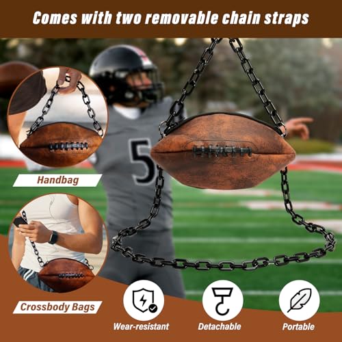 HOT ! Football Shaped Crossbody Bag 9# Football Purse with Chain Strap, Sports Fan Handbag for Game Day & Streetwear