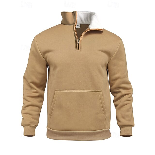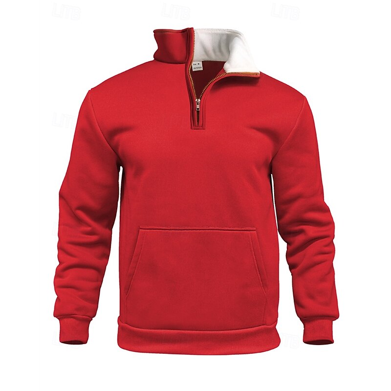 More information about Men's Sweatshirt Quarter Zip Sweatshirt Black Army Green Red Navy Blue Khaki Half Zip Plain Sports & Outdoor Daily Holiday Polyester Streetwear Basic Casual Winter Autumn / Fall Clothing Apparel