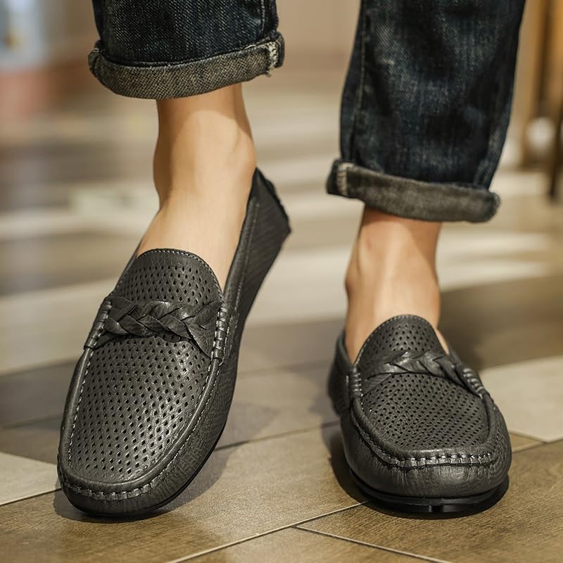 Why Choose Mens Loafers Shoe Square Toe Faux Leather Breathable Perforated Driving Loafers Lightweight Flat Heel Slip Resistant Fashion Slip-ons?