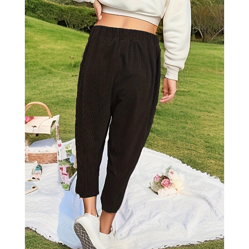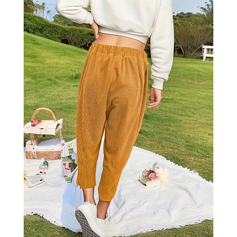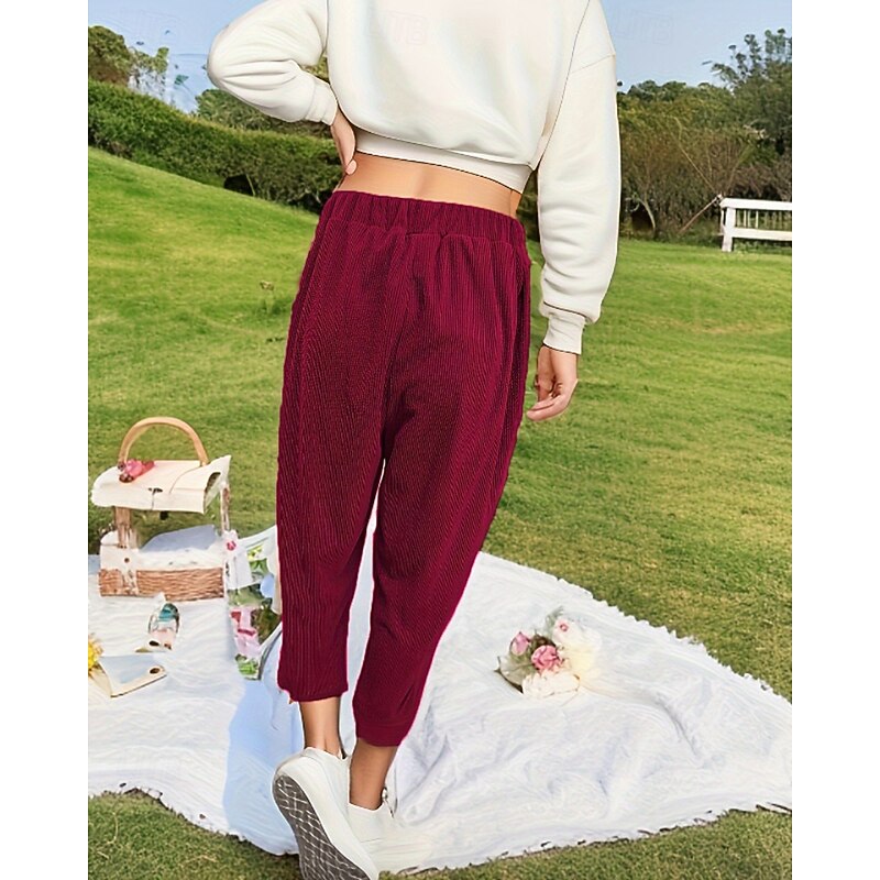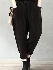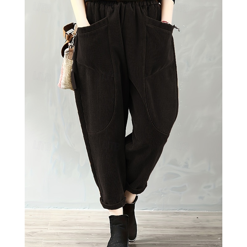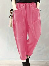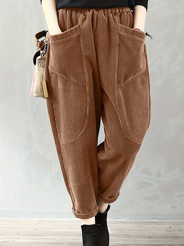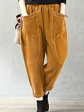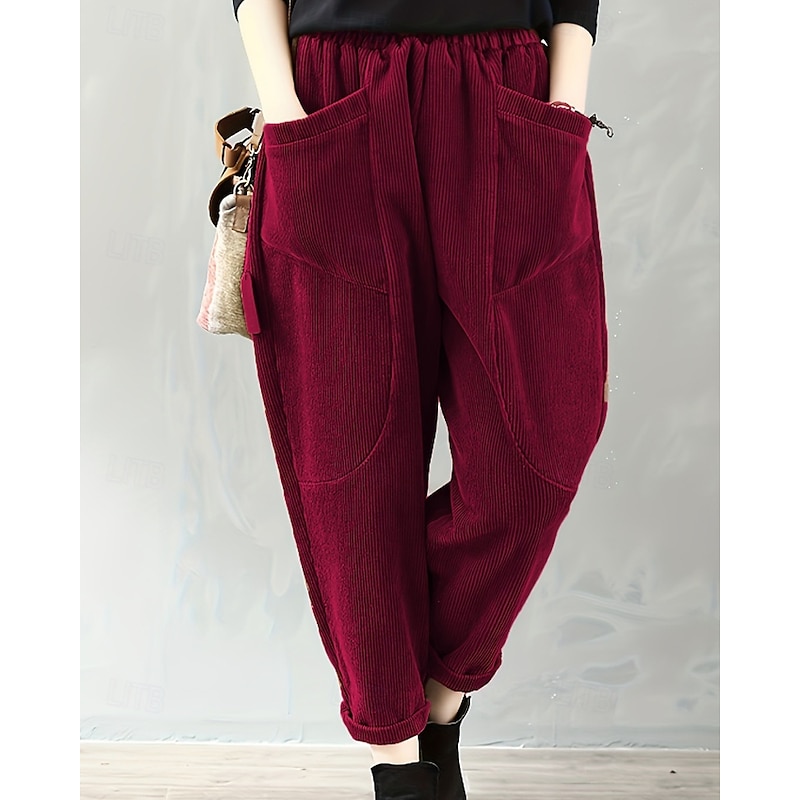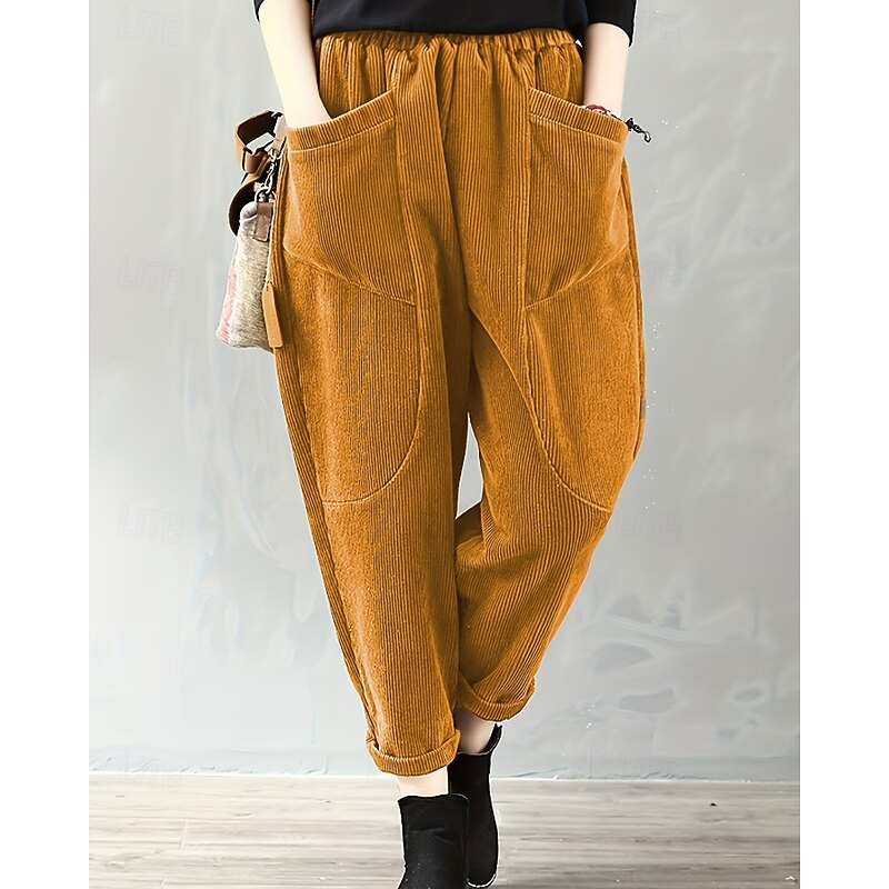More information about Women's Corduroy Pants Slacks Straight Streetwear Casual Full Length Natural Plain Pocket Elastic Waist Comfy Street Holiday Weekend claret Dark Brown Black Yellow Fall Regular Fit