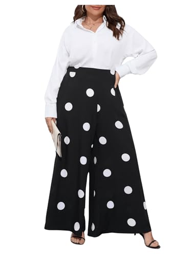 More information about OYOANGLE Women's Plus Size Polka Dots Casual Wide Leg Palazzo Pants High Waist Long Pants Trousers