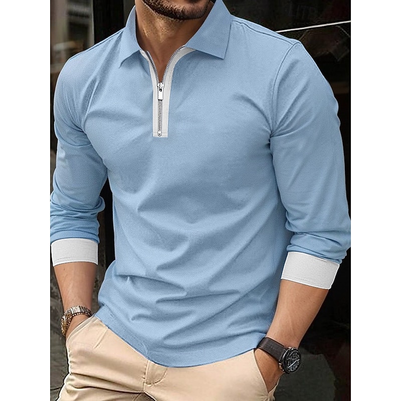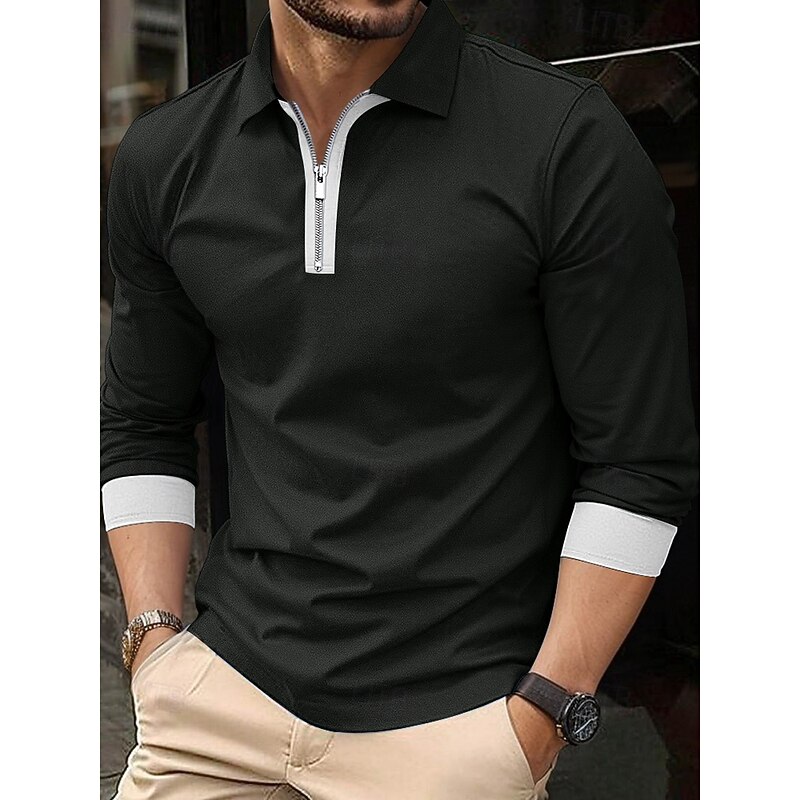 This Men's Business Polo Golf Shirt Street Casual Lapel Long Sleeve Basic current Plain Zip Up Patchwork Spring Fall All Seasons Regular Fit Black Navy Blue Blue Brown Business Polo combines elegant design with practical functionality. Every detail has been carefully considered to ensure you get the best possible experience. The top-grade construction means this product will serve you well for years to come.
