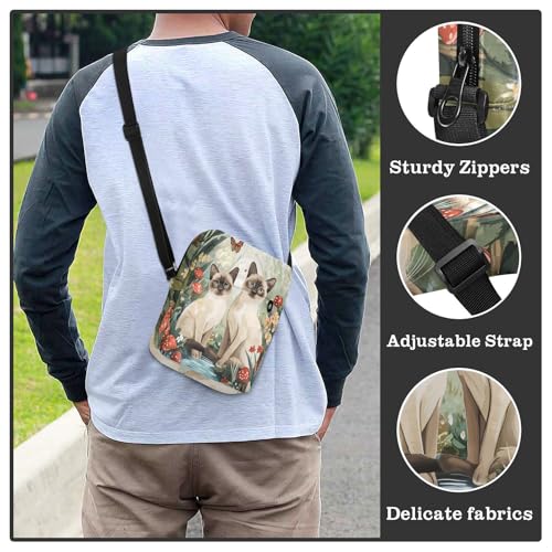 small messenger bag for men crossbody bag men Casual Purse Adjustable Strap for work work - Cartoon Tonkinese Cats 4