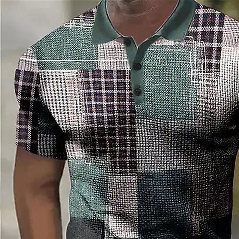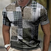 More information about Men's Plaid Waffle Polo Shirts Golf Shirt Short Sleeve Polo Shirts Collared Shirts Vintage Casual Vacation Wear Formal Wear Festival Wear Buttons 3D Print Blue Green Khaki