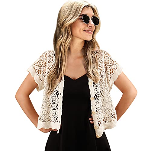 Women Cardigan Hollow Out Floral Cardigans White Crochet Shrugs 6
