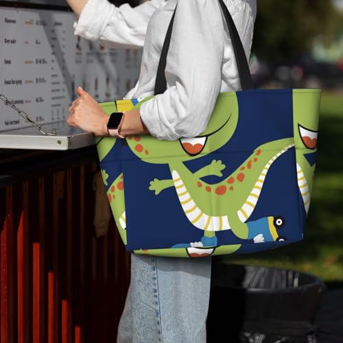 More information about Dino Playing Roller Skate Print Beach Pool Bags Tote For Women Ladies Large Gym Tote Carry On Bag For Weekender Travel Waterproof