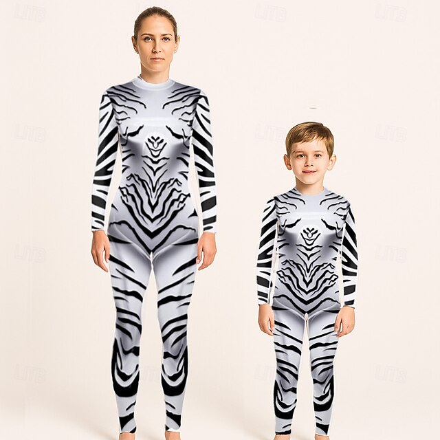 HOT ! Family Jumpsuit Halloween pattern Street Print Black White Red Long Sleeve Matching Outfits