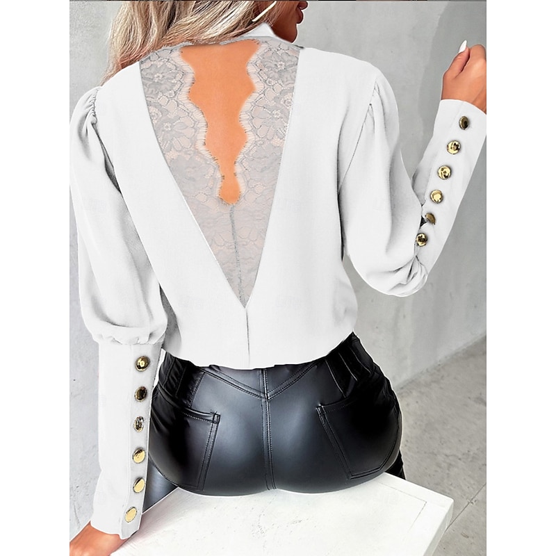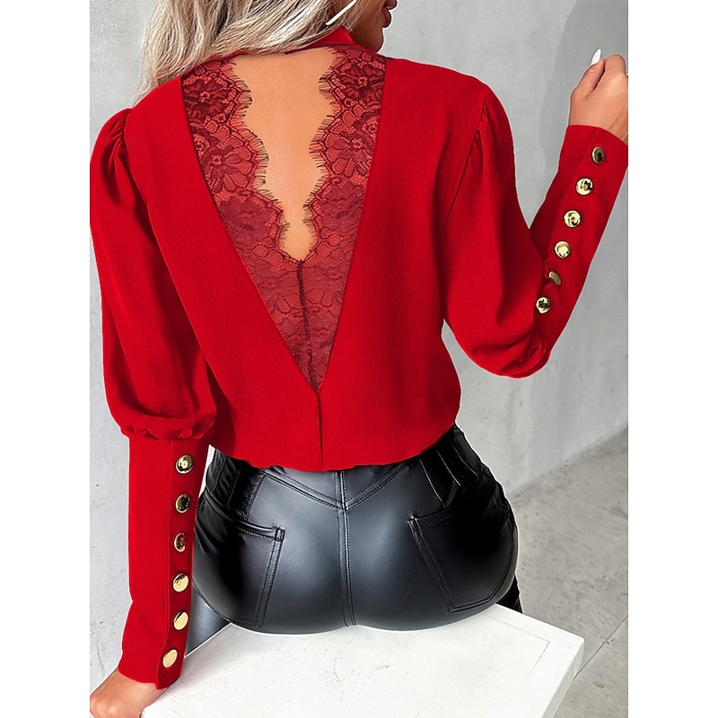 More information about Women's Shirt Blouse Solid Color Elegant Ladies Stylish Long Sleeve High Neck Work Lace Buttons Black White Red Blue Spring Fall Winter