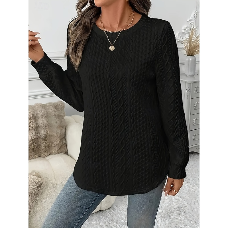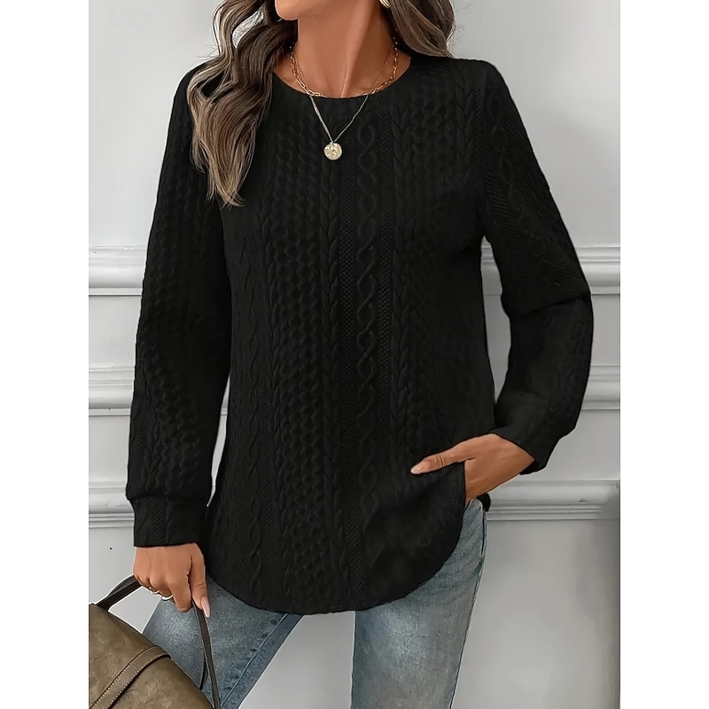 HOT ! Women's Blouse Solid Color Stylish Casual Long Sleeve Crew Neck Regular Tops Daily Black White Spring Fall Winter