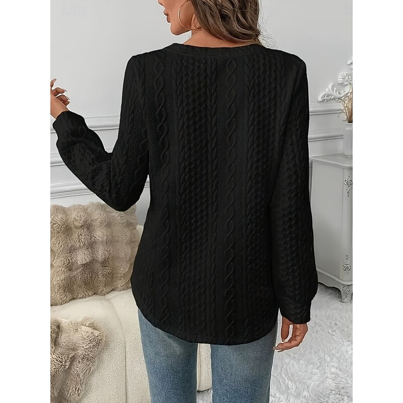 Women's Blouse Solid Color Stylish Casual Long Sleeve Crew Neck Regular Tops Daily Black White Spring Fall Winter 8