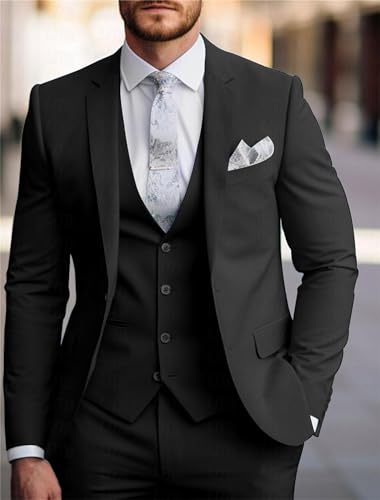 More information about Men's Suits 3 Piece Slim Fit Suit Set,one Button Business Tuxedo Wedding Solid Blazer Jacket Vest Pants