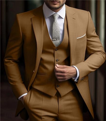 Men's Suits 3 Piece Slim Fit Suit Set,one Button Business Tuxedo Wedding Solid Blazer Jacket Vest Pants 1
