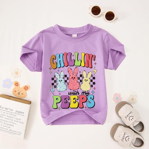 HOT ! MODNTOGA Toddler Girl Easter Outfit Bunny Graphic T-Shirt Chillin' with My Peeps Letter Print Shirt Short Sleeve Tee Tops